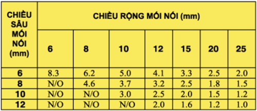 3. Với những mối nối lớn hơn, chiều rộng mối nối nên lớn hơn chiều sâu mối nối